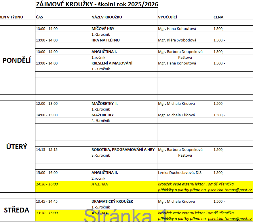 Slavnostní zahájení školního roku 2025/2026 proběhne v pondělí 1. září. Škola se otevře v 8:00 hod. Výuka bude probíhat do cca 9:00 hod. Tento den se nevaří a děti se nepřezouvají.