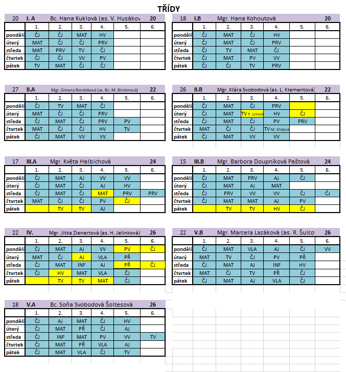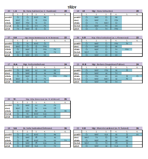 POČET ŽÁKŮ VE TŘÍDÁCH