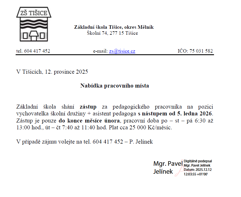 Přijmeme asistenta pedagoga na zástup