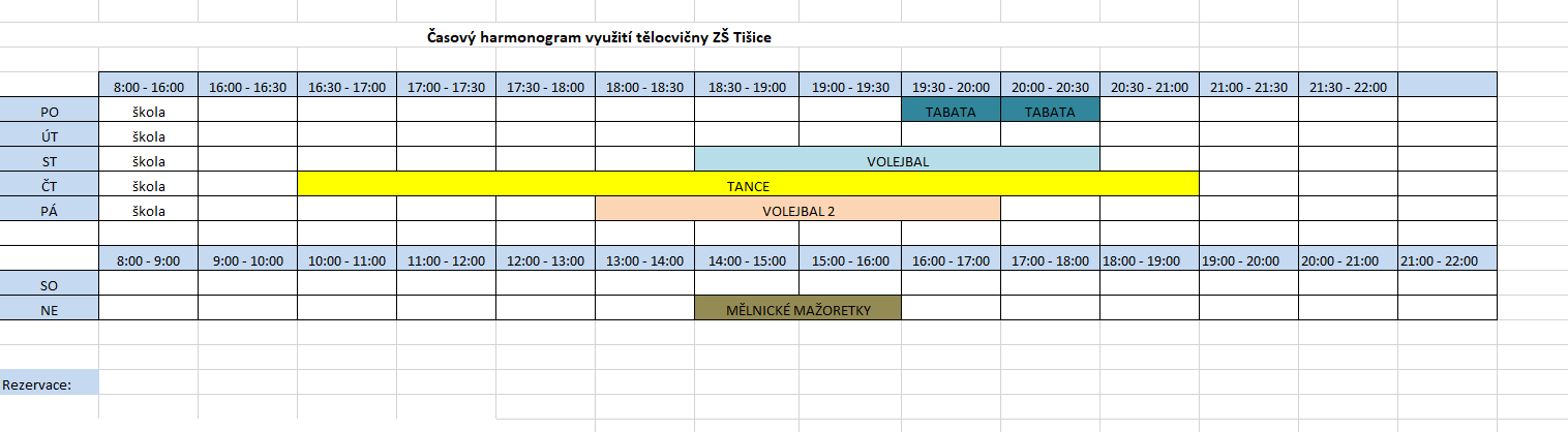 REZERVACE NAJDETE V HARMONOGRAMU ČINNOSTÍ.